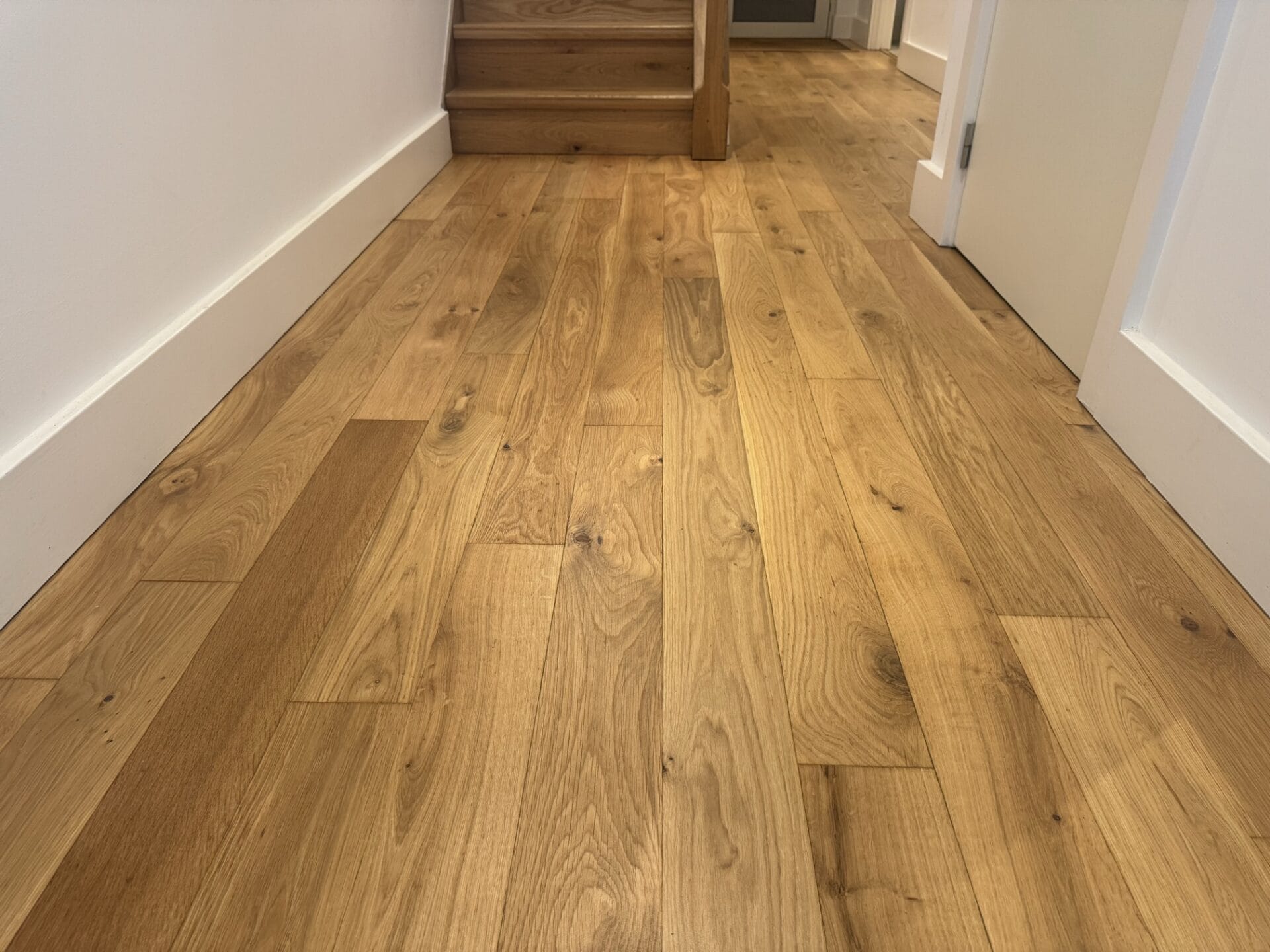 The oak boards at the front of the house had seen years of dog paws, school shoes, and the occasional DIY mishap. What was once a warm amber tone had turned dull grey in places, with patches of worn finish by the door. They’d lived with it for years.